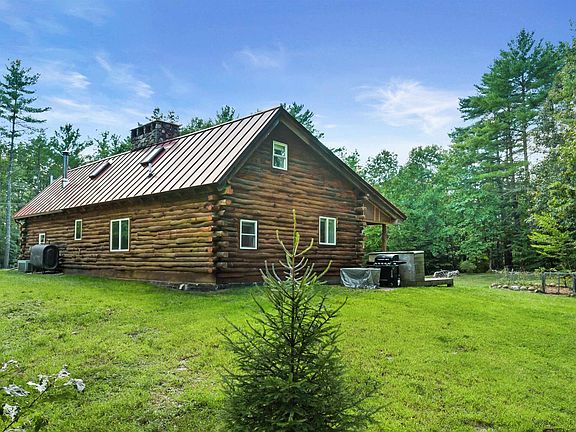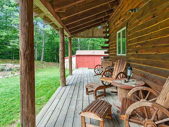 Dreaming of living in the woods in a log cabin down a dirt road. Look no further and come take a tour! When you pull in the driveway the beautiful logs and front farmers porch catch your eye. Enjoy sitting on the porch and watching wildlife come into your yard, Moose, Bear, Deer and Turkeys to name a few! This home features 3 bedroom and 1 full bathroom located on 1.02 acres. You enter the home and are greeted by the beautiful floor to ceiling stone fireplace. Open concept floorplan into the living room, dining and kitchen all wrapped around the fireplace. Take a walk up the spiral staircase into one of the 3 bedrooms. This loft bedroom overlooks the common areas. There is a bedroom on the first floor and then on the other side of the house is a staircase going up into the last bedroom. A few extras include Central AC and Generator hook ups. Drive a mile down the road to get to Kimball Pond for a great fishing spot! *Sellers to find suitable housing. Showings begin Tuesday 8/30