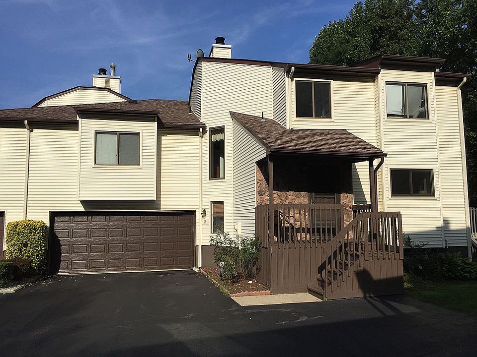 Beautiful end unit in highly desirable Kings Landing! Spacious 1,750 square foot 2 bedroom 2.5 bath unit situated at the end of a quiet col-de-sac with private deck overlooking a large wooded area. The living room boasts high ceilings with skylight for tons of natural light, stunning new solid hardwood floors, and a warm, inviting wood burning fireplace. A huge master suite on its own level offers a private master bath with stand-up shower and large soaking tub. The top floor features second bedroom and full bath with areas for a reading nook, office space, or 3rd bedroom option. Sliding doors off the dining room lead to a very quiet and private Trex deck overlooking the woods. Large partially finished basement suitable for home office, playroom or home gym. Recent updates include solid hardwood floors, two-car garage door with keyless entry, and new Renewal by Anderson windows. Kings Landing is a spectacular neighborhood with beautiful landscaping, a large community swimming pool with bathroom access, and complete snow removal. The community is centrally located to both train and ferry and minutes from downtown Red Bank. Contact us with any questions.