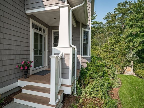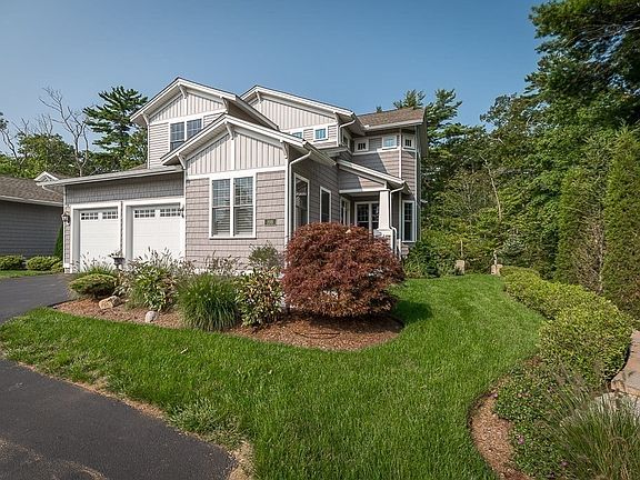 Sunny, like-new town home in the beautiful Village at Magnolia Shores! This stunning and stylish home lives like a single-family and is tucked away in a private location abutting conservation land. Spacious 2-bedroom (with 1st floor primary), 3 ½ bath home with 3 levels of living space including a finished walk out lower level. Beautiful details throughout include high ceilings, large windows, crown molding and beautiful built-ins. Custom gourmet kitchen, primary bedroom suite with a large walk-in closet, bathroom with double sinks and spacious walk-in shower, a stunning dining room, office, living room with cathedral ceilings and fireplace, half bath, laundry and outdoor deck. Bedroom, full bath, loft and large walk-in closet upstairs. The lower level includes an elegant family room with bar and custom cabinetry, office and full bath. Doors to the lower-level patio and private outdoor space. 2-car garage, A/C, ocean just minutes away. Maintenance-free living at its finest!