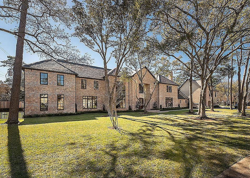 English Country house built by Mark Harvie. Antique reclaimed brick exterior, light-filled, integrated rooms, double-height, beamed, or beamed-truss ceilings and honed limestone or oak floors. Walls of windows and French doors, superb interior and exterior vistas via open galleries, elevator, formals and library with antique paneling. Stone fireplaces, professionally-equipped kitchen and a secluded master with coffee bar, dual lavish baths and custom-fitted closets. En suite bedrooms, game room with full bar, guest apartment with kitchen and separate outside entry, back staircase and three laundries. Pool and raised spa, travertine patios. Future third car garage and summer kitchen.