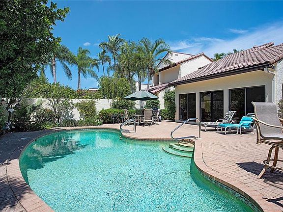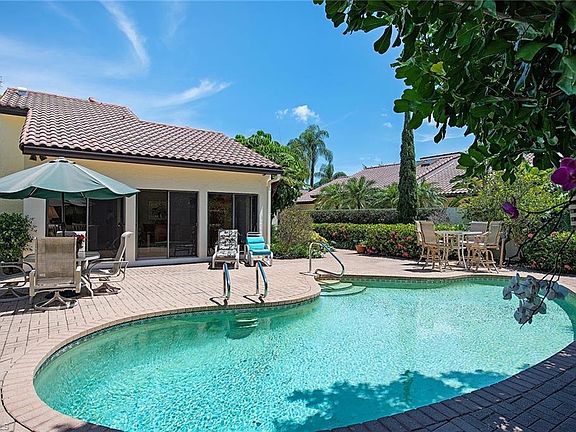 Arguably one of the loveliest lanai/garden/pool areas in all of Las Brisas. It's a magical setting with Southern exposure on the large pool and expansive lanai. Add to that the beautiful landscaping with numerous orchids, flowering trees, a Meyer lemon tree, a Grapefruit tree, and an Orange tree. This home is all on one floor and features 2-bedrooms, family room, 2-baths, and high ceilings. An all-new kitchen, installed 2 years ago, with stainless appliances and quartz countertops. 2-car garage. Plus, you are in Las Brisas, one of Pelican Bay's premier villa communities. Steps to the Club Pelican Bay across the street. Close to the tram stations taking you to one of Pelican Bay's two private beach restaurants and almost three miles of private beach. Pelican Bay also offers two tennis centers, a first-class attended fitness center, walking and bike paths, canoes and kayaks.