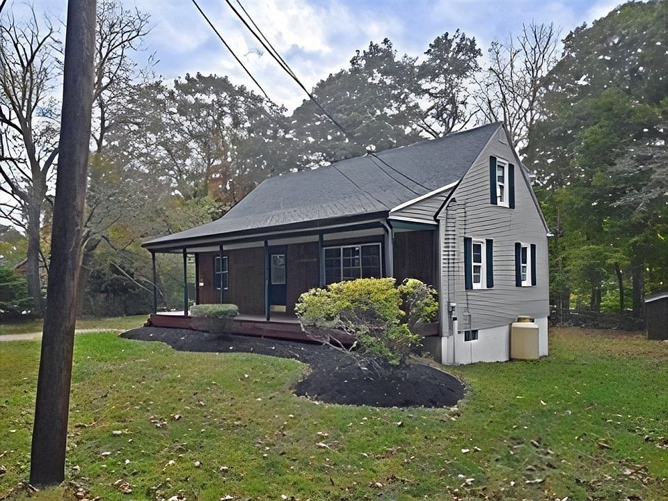 Nicely updated Cape Cod style home with great curb appeal boasting a beautiful farmer's porch and rustic looking front with freshly stained mahogany decking. Lots of character and charm including custom built ins. Newly finished hardwood floors in most rooms. Eat in kitchen with small kitchen island. 3 bedrooms, 2 full baths. New roof this year. Heating system, oil tank and oil line new in 2021. Fresh paint throughout. Awesome home and location. Great back yard with shed. Near golf course.