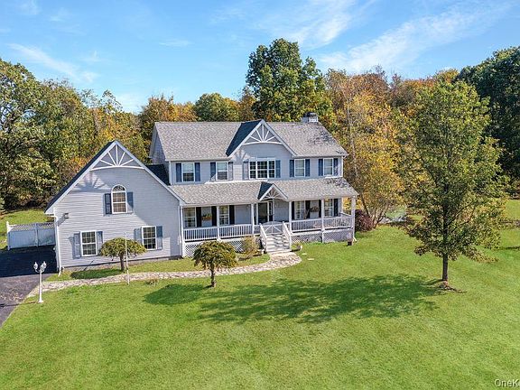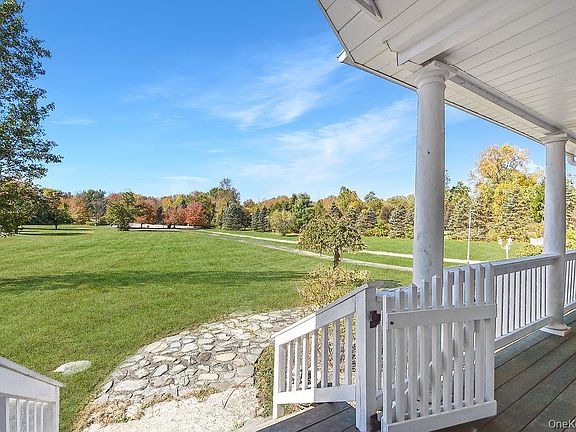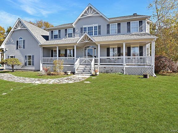 Designer touches throughout: renovated tile baths, beamed ceilings, ornate trim, and hardwood floors. The backyard oasis boasts a pool with Trex deck, hot tub, and pergola—ideal for summer entertaining. Relax on the front porch or enjoy a BBQ by the pool. Heating: Oil (Above Ground, decking around pool looks like in ground pool)-- Parking: 2-Car Attached Garage with EV Plug-Prime location: Private yet minutes from schools, shopping, and Taconic Parkway.