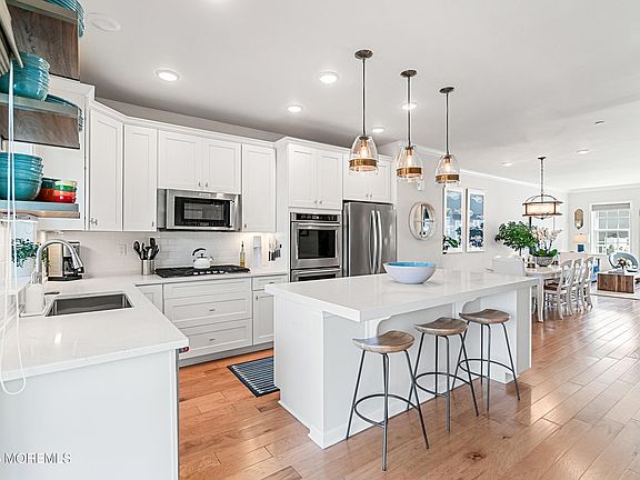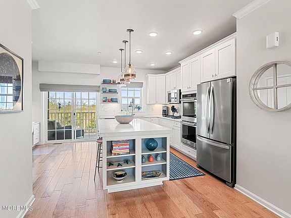 LUXURY WATERFRONT LIVING WITH NYC VIEWS - Nestled in an exclusive waterfront enclave where luxury living meets the tranquility of the sea, this immaculate 3BR, 3.5BA townhome offers an unmatched opportunity to live in a vibrant community with front-row views of Sandy Hook Bay and the New York City skyline. Step out your door to the beach, marina, scenic Henry Hudson Trail, and the Seastreak Ferry coastal serenity and NYC access have never been so perfectly paired. Whether it's morning coffee on one of your 3 private balconies or watching fireworks from your rooftop deck, every moment here feels like a getaway. Thoughtfully designed across four levels, this home combines comfort and elegance at every turn... The main living floor features a spacious open kitchen with oversized quartz countertops, stainless appliances, and a generous center island ideal for both everyday living and entertaining. Hardwood floors, crown molding, a gas fireplace, and two expansive balconies complete the beautifully finished space.