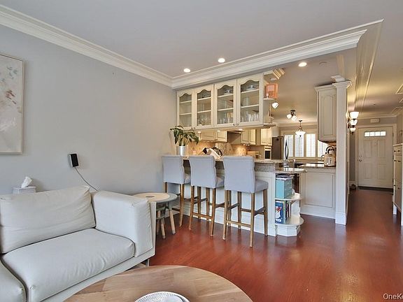 Welcome to this beautifully maintained unit in the desirable Cedar Garden Townhouses, offering three full levels of stylish and functional living space. Step inside to find gleaming hardwood floors, recessed lighting, and elegant crown molding throughout the main living areas. The updated kitchen is a true standout, featuring granite countertops, tumbled marble backsplash, custom maple cabinetry, stainless steel appliances, a double stainless sink, and convenient counter seating, perfect for casual meals or entertaining. Upstairs, you'll find an updated bathroom and spacious bedrooms, while the walk-out lower level offers a large recreation room, full bath, washer/dryer, and a storage room, plus direct access to the fenced rear patio—ideal for outdoor relaxation or entertaining. Enjoy year-round comfort with four ductless A/C and heating units, and the convenience of an assigned parking space right next to the unit. All of this, just minutes from shops, schools, village amenities, and transportation—a truly unbeatable location. There are no audio recording devices inside this property.