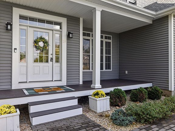 CONTEMPORARY FARMHOUSE FOR TODAY'S MODERN CASUAL LIFESTYLE! A welcoming covered porch entrance leads to a two story foyer with an impressive turned staircase offering a dramatic view of the living space below. Kick back and relax in the comfortable sized living room that easily accommodates oversized furniture and big screen TV above the gas fireplace. Classic white Shaker style cabinets with contrasting black granite countertops and a statement glass mosaic backsplash. Sunny breakfast nook to start the day. Informal dining room for family gatherings and holiday entertaining. First floor guest bedroom or home office with adjacent full tile bath. Elegant first floor Primary Suite with tray ceiling, a tile spa bath with jetted tub, glass enclosed tile shower, dual granite sinks and spacious walk-in closet. Engineered hardwood flooring throughout! The second floor offers two additional bedrooms, a bonus room with a closet and a full tile bath with dual granite sinks. Need more space? Check out the unfinished walk-out lower level ready for finishing. An irrigated lush yard with additional clearing for more play space for the kids and pets! Desirable FOREST VIEW sought after neighborhood surrounded by over 100 acres of conserved open space. Fantastic opportunity to live in the charming town of New Boston!