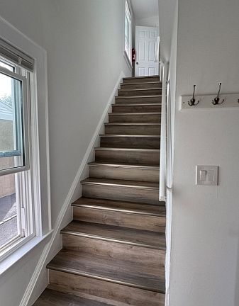 Newly renovated apartment. Bright and Spacious. Quiet street. Laundry connection ready in unit. Park is just steps away. Close to downtown, restaurants, train. Apartment occupies the entire second floor. Available from now. Come and Make it your own Oasis! Tenant responsible for gas, electric, cable. Security 1-1/2 month rent. Landlord pays for heat. water, sewer, garbage removal etc.