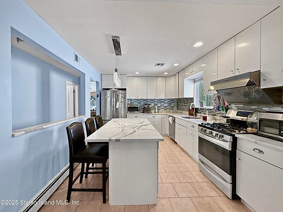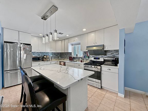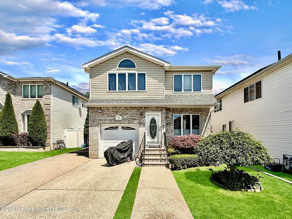 Attention please! A truly spectacular oversized two family home on a large lot, designed to perfection!! Gorgeous new kitchen, with beautiful countertop and island, high end appliances. Hardwood floors throughout, beautiful french doors to patio. Brand new central air, baseboard heating, new finished basement with a full bath. Four oversized rooms including a large family room on the first floor and three bedrooms on the second floor. Master suite comes with a 3/4 bath and walk in closet. Above ground pool with pavers both in the backyard and front yard. Driveway and indoor garage to easily fit two cars, plus solar panels to save on electricity. 13 years left, 349.00 per month. Nice size one bedroom rental on the second floor to generate extra income.