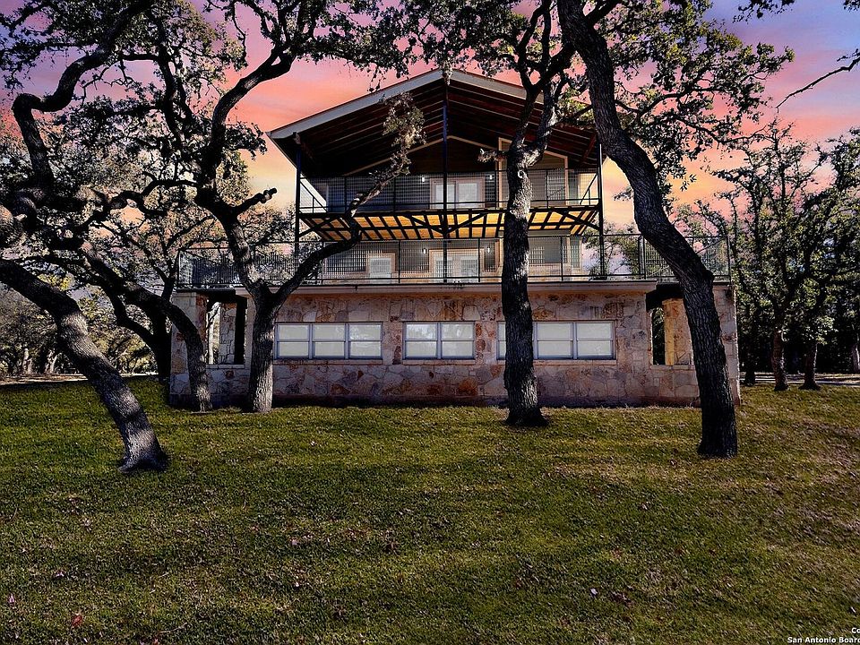 Gorgeous "tree house" nestled in hundreds of oak trees just off the Frio River!! Situated on 2 acres in the gated Twin Forks community in Leakey, TX is this picturesque 3 story stunner with wrap around decks on 2 levels!! Literally your own "nest" in the trees! With 3 bedrooms and 3 bathrooms, a gorgeous kitchen, Saltillo tile throughout and a crisp clean feel this house is set up and move in ready. The massive living space boasts a beautiful electric fireplace wall and tons of natural light. The rock guest house with over 500 sq feet has it's own bedroom and bathroom, living space and upgraded kitchen with stainless appliances as well. The recent remodel is stunning and the 360 views of the hill country are simply amazing. Enjoy the mile of PRIVATE frio river access from two different parks in the community. No need to fight the crowds when you have the river right in your neighborhood! The 2 acre lot is completely fenced and gated on two different sides of the property with a road circling around- set up beautifully. This is a must see!!