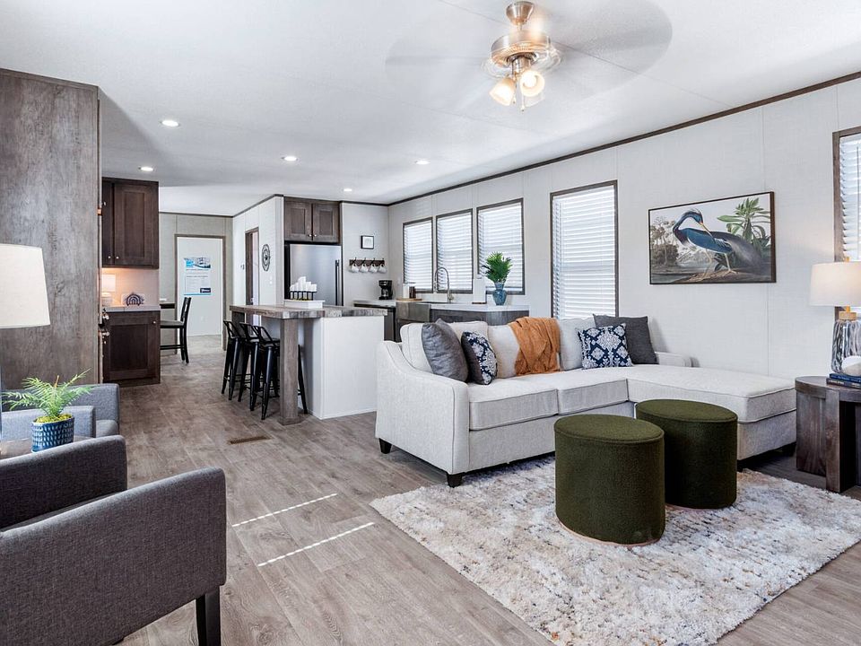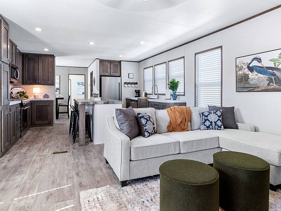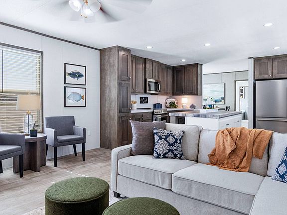 Discover your future home in this thoughtfully designed 3-bedroom, 2-bath Wilson model offering approximately 1,191 square feet of comfortable living space. With its open-plan layout, the living, dining, and kitchen areas flow seamlessly-perfect for everyday life and entertaining alike. A modern kitchen boasts 42" overhead cabinets, hardwood cabinet doors, and a crisp farmhouse sink, with stainless steel appliances available as options. In the master suite, you'll find a double-sink vanity, a generous 72" deck tub with plumbing access, and a 48" fiberglass shower with glass door, along with elongated toilets and brushed nickel fixtures. Energy efficiency and comfort are built into every aspect-insulation levels, low-E thermal pane windows, and a full wrap with vapor barrier help regulate climate year-round. The exterior features include a craftsman style front door with storm door, cottage rear door, vinyl siding, and attractive trim details. This home also includes modern utilities like total electric service, exterior outlets, and a programmable thermostat. Living within this vibrant neighborhood means access to amenities like a community pool, clubhouse, parks, playgrounds, and shaded picnic areas, all while being close to local shopping, dining, and excellent schools. Don't miss the chance to make the Wilson your home-reach out today to schedule a tour or explore available upgrades and financing options.