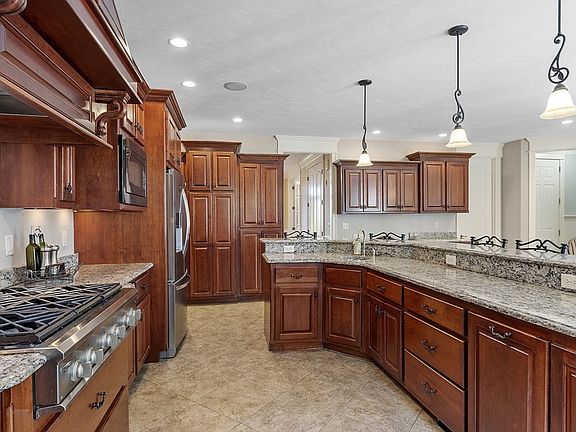 Welcome to Magnolia Farm! This exceptional home sits on a large, flat acre lot and offers 4 full baths, a spacious open foyer, and a front-to-back living and dining room perfect for entertaining. The heart of the home is a large open kitchen flowing seamlessly into a cathedral-ceiling family room with a dramatic wood-burning fireplace and stunning walls of glass, creating a bright and inviting atmosphere. A private first-floor office provides the ideal work-from-home retreat. Additional highlights include two separate stairways, a recently remodeled spa-like primary bath, and a fully finished lower level with flexible space for recreation, fitness, media, or guests. Spacious bedrooms add comfort and versatility. A three-car garage offers ample storage and parking, while the expansive lot provides spacious outdoor space for play, gardening, or entertaining. With its open design, modern updates, and premier location in Magnolia Farm, this home is truly move-in ready and impressive.