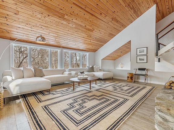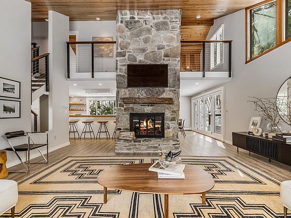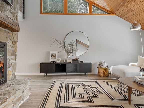 Extraordinary Renovation !  This exceptional Stratton Mountain Resort residence has been completely reinvented with the most premier of fit and finish to compliment this home's ideal location- Situated on an oversized 1.47 acre lot with winter shuttle service to the Base Lodge. This home will "wow" you. Designed to entertain, the open concept great room features cathedral ceilings, wood floors, stone wood burning hearth, wall of windows, and flows seamlessly to the dining area and incredible kitchen with island and subzero, Wolf and Miele appliances. The space is so beautifully designed and furnished you will never want to leave. A four star Ensuite master on the top floor provides the privacy and incredible bathroom design and fixtures you expect in a premier home. An additional family room with second wood burning fireplace provides the extra space for family and friends to hang out or let it double as the kids bunk room and TV Room.Two additional guest rooms share another incredible bath and a loft over looking the great room is perfect for office, quiet sitting area or an overflow guest room. On top of all of that, this home has the capacity for more and boasts additional unfinished heated space for easy expansion. The house is situated away from the road w/ privacy and plenty of space to create more outdoor amenities should you choose. 2 car heated garage &mudroom. During the summer, you will walk to everything the Base Area Village has to offer. Sport Center Eligible