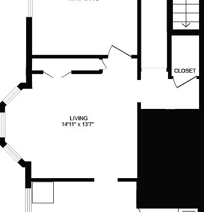 Good-sized living room with refinished hardwood floors