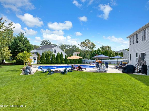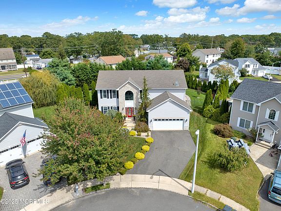 Coming Soon shown 12-1-2025. Discover this impressive 4-bedroom, 2.5-bath Colonial with an attached 2-car garage, ideally situated on a quiet cul-de-sac in the desirable Maryann Estates. A classic brick exterior and well-kept landscaping introduce a warm two-story foyer. The main level offers an effortless flow: a generous living/dining area transitions into an eat-in kitchen and adjoining family room, where a beautiful gas fireplace anchors the space. Sliding doors lead directly to the patio for easy indoor-outdoor living. The kitchen is bright and functional, showcasing stainless steel appliances, custom cabinetry, a center island, and a sizable pantry. A full 13-course basement with exceptionally high ceilings offers incredible potential for storage, recreation, or future finishing. Upstairs, the spacious primary suite includes an oversized walk-in closet and a spa-style bath with jetted tub, separate shower, and double vanity. Three additional bedrooms provide excellent closet space and flexibility for guests, office, or hobbies. Step outside to a backyard built for enjoyment a fenced-in retreat featuring a patio, large saltwater heated inground pool, fire pit, and storage shed. It's an ideal setting for gatherings or quiet relaxation. Updates include: Roof 1 yr old with warranty. Pool Liner and Salt Generator 2 years, Pool Cover 3 years. 2 yr Home Warranty being offered. Close to shopping, schools, dining, and just a short drive to the Jersey Shore, this home delivers comfort, convenience, and room to grow.
