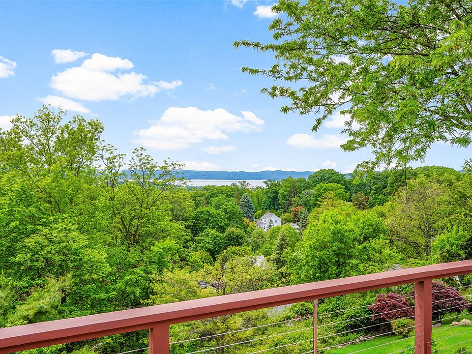 Enjoy sweeping Hudson River views from every room in this turnkey ranch. The sunlit living room features hardwood floors, a brick wood burning fireplace, and sliding doors to an expansive 62' balcony overlooking the river. Enjoy meals with a view from the dining area or new eat in kitchen complete with island breakfast bar, quartz countertops, stainless steel appliances, and recessed lighting. A family room with balcony access, powder room, and 1 car garage complete the main level. The lower level offers a spacious primary suite with double closets and a luxe ensuite bath with double vanity, tub, and stall shower. Two additional bedrooms share a conjoining full bath. Washer/dryer hookup on the same level for convenience. A workshop, sauna, and backyard access through another sliding door add to the home’s appeal. From sunrise reflections to cozy nights by the fire this stylish home invites you to slow down and savor the view. Close to Ossining Metro North, Bee-Line bus stops, shops, restaurants, and parks.