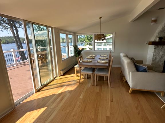 This is a short term rental from October 1-May 31,2026. (7 months) This fully furnished, freshly painted and beautifully updated Lake front home has amazing lake views with two private docks, a wrap around deck, an open-concept living room/dining room, kitchen with a breakfast bar, updated appliances, cathedral ceiling and skylight. One bedroom is conveniently located on first floor. Primary bedroom has a king sized bed, ceiling fan and newer carpeting. Third bedroom has bunk beds and a pull out trundle. The walk out basement has a wood burning stove, rec room, washer/dryer and new tile floor. Amenities include boating, hiking, fishing,ice skating, winter sports. Close to Hackettstown Hospital, Allamuchy State Park, major highways, top rated restaurants, stores. Just bring your suitcase & enjoy lake front living at Cranberry lake!