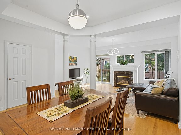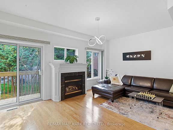 Charming and meticulously maintained END UNIT townhome nestled in a prime location in Buttonville. Main level features 9-foot ceilings with an open concept eat-in kitchen overlooking a small quiet parkette. The bright cozy dining room connects the living room with a marble gas fireplace and walk out to the balcony. The finished lower level offers a separate entry walkout to a south facing treed backyard and a possible 3rd bedroom, roughed-in for an additional bathroom. Originally a 3 bedroom converted by the builder into 2 spacious bedrooms. Baths are outfitted with glass showers and granite counters. Additional features include an office/computer nook with soaring cathedral ceilings. Freshly painted throughout including exterior cathedral windows, newly paved driveway and newly stained balcony. Low maintenance fee includes water, landscaping, snow & garbage removal, common elements, building insurance and parking. Excellent location surrounded by top ranking schools including Buttonville PS, Unionville HS, St. Augustine, St. Justin Martyr. Walking distance to T&T supermarket, Shoppers, Tim Hortons, restaurants and two major banks. Public transit is at your doorstep and just minutes drive to Hwy 404/407.