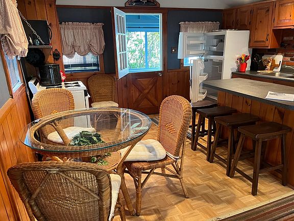 Cozy ranch style home with 2 bedrooms within walking distance to beach. Kitchen has a dutch door onto an enclosed screen porch and an breakfast island. The rear yard is enclosed and has a shed for storage. Living room with vaulted ceiling and pine walls with ceiling fan. Used by family only summers for 30 years. Gas monitor heater is present heat source. Located in a desirable neighborhood off of High Street. Showings start October 22, Sunday, at open house 11:00 to 1:00.