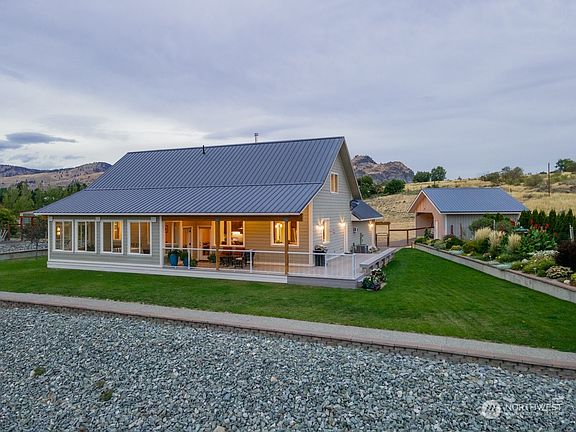 Discover your private oasis with this stunning 3-bedroom, 2.25-bath home nestled on 5.22 acres, just minutes from town and all amenities. Overlooking the serene Chelan River, this property boasts expansive territorial views. Home features solid oak floors, granite countertops, soft close maple cabinetry, and a refrigerator room for extra cold storage. Relax and take in the nature around you in the large sunroom or entertain on the wrap-around deck. The property includes a shop, beautiful flower gardens, and a variety of fruit and nut trees, as well as grapes and berries. This home offers the perfect blend of tranquility and convenience.
