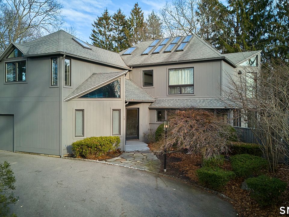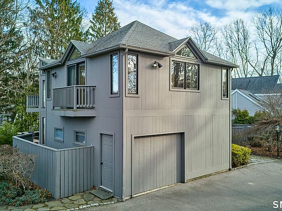 MYSTIC - MASONS ISLAND. Located within the Private Association on beautiful Masons Island, this spacious light and bright Contemporary home is beautifully sited on a private elevated lot. The open floor plan allows for easy living and wonderful natural light throughout. The living room with fireplace opens to a deck on both sides, family room and dining room. Center island kitchen opens to an enclosed patio. The first floor bedroom has a full bath. The second floor has a spacious primary bedroom with ensuite bath and two additional bedrooms each with its own full bath. The third floor is a delightful space and great for an office, playroom or TV room. Beautifully treed lot with substantial privacy. Masons Island amenities include sailing and water access for boating and fishing. Amtrack Station for commuters is nearby. Membership in The Masons Island Yacht Club is offered by invitation