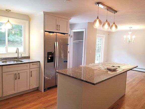 Finishing touches almost done on this spacious, COMPLETELY remodeled raised ranch! Everything is NEW - kitchen, baths, hardwood floors, windows and more. Main level features gorgeous kitchen with center island & granite counters; dining area with sliders to patio; large living room with fireplace & picture window; beautiful bath with jetted tub & double vanity; and 4 good sized bedrooms, including large master with stylish full bath. Terrific family room with fireplace on lower level; cozy office with access to attached two-car garage; and utility room with washer/dryer hookups. Private & pretty backyard with huge patio and convenient storage shed. Fabulous neighborhood close to Worcester line - just minutes to Tatnuck Square, downtown Worcester, restaurants, cultural venues, universities & medical centers. All applications processed through NTN, to include credit & background checks; $25 per adult NTN fee to be paid by applicant. No smoking, vaping or pets.