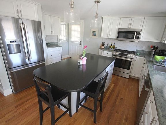 Beautiful, well maintained Open Concept 3 Bedroom Ranch updated in 2015 for today's living and entertaining. The gourmet Kitchen features one year old sleek Bosch stainless steel appliances, a granite island with built ins and cabinetry. The spacious Living Room and Dining Area have hardwood floors throughout. The deck overlooks the yard. One full and one half bath with laundry are accented with custom tile. Central Air and Hydro Air furnace were installed 18 months ago. The one car attached garage lead into the mudroom with vaulted ceilings and a skylight. The finished lower level includes a State of the Art Home Theater with a 4K Projector and drop down 80 inch screen. A new Oil Tank located outside allows for additional storage space in the unfinished section of the lower level. Centrally located enjoy all that Hamilton has to offer including train access, parks, shops and restaurants!