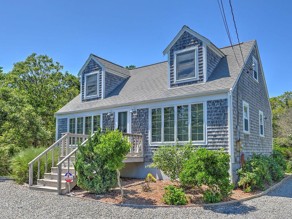 Private beach rights & sounds of the sea are the rewards of owning this classic Cape tucked at the end of a sandy lane. Welcoming & relaxing are the best descriptions of the bright, open interior. Front to back Dining/Kitchen area opens to wrap-around deck featuring natural gas firepit, awning, natural privacy & the sound of waves on East Sandwich Beach. Living Room boasts built-ins, large screen TV. Full Bath and 1 BDRM down, with 1/2 Bath and 2 oversized BDRMS up. Hardwood on 1st FLR and newer carpet on 2nd FLR. Updated with Roof 2005, Deck 2008, Siding & windows 2009. Offered turn-key, completely furnished including all appliances. Known as ''The Big Chill'' this home is the perfect place to start your own summertime traditions!