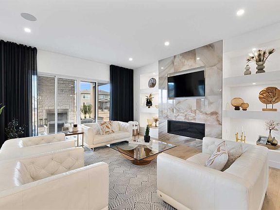 Step into refined simplicity with this exquisite newly built Scandinavian-style bungalow showcasing modern design and natural beauty. “The Olso” was created and built by Ironstone Custom Homes. Thoughtfully crafted with clean lines, organic textures, and an emphasis on light and space, this home redefines contemporary comfort with an array of high-end upgrades and sophisticated features. From the exterior, the home's minimalist architecture captures attention with its blend of SAGIWALL custom white oak exterior cladding that is a completely maintenance free product! As well James Hardie concrete infused matte black accent panels, and oversized windows that bring the outdoors in. The single-level layout offers the ultimate in ease and accessibility, while maintaining an elegant and airy presence. Inside, you're welcomed into an open-concept living space radiating warmth and functionality. Vaulted ceilings and expansive windows create a sense of volume and tranquility, enhanced by engineered wide-plank hardwood flooring, soft white walls, and the calming palette typical of Nordic design. At the heart of the home lies a gourmet kitchen, featuring sleek quartz countertops, custom cabinetry, designer fixtures, and a full suite of premium stainless steel appliances—perfect for both entertaining and everyday living. A butlers pantry awaits you with a storage on one side and additional cabinets on the other side. The spacious office over looks the landscaped front yard. A seamless transition between the gourmet kitchen, dining area and living room create perfect synergy. The bungalow offers spacious bedrooms, each designed with simplicity and comfort in mind. The primary suite is a private retreat with direct access to the outdoor deck with separate space for cooking , a retreat with a wood burning fireplace and hot tub area. This luxurious ensuite bath, featuring a double vanity, walk-in glass shower, separate tub and spa-like finishes. A massive closet with builtins galore. Every corner of the home is elevated with smart home features, upgraded lighting, and energy-efficient systems. Seamlessly extending the living space outdoors is a true highlight: an exceptional outdoor experience anchored by a grand wood-burning fireplace. This custom-built stone feature sets the tone for year-round gatherings under the covered patio. Whether you're enjoying crisp evenings beside the fire or hosting al fresco dinner parties, the space offers an intimate connection to nature, blending modern luxury with rustic charm. The basement is fully finished offering 3 massive bedrooms, builtins, a full bathroom, exercise room, wine room a family room and recreation space. Don’t miss the hidden door or the triple car garage completely done out!! Covered by New Home Warranty with upgrades galore, timeless Scandinavian design, and an unbeatable indoor-outdoor flow, this is a rare opportunity to own a home that’s both effortlessly stylish and functionally flawless.