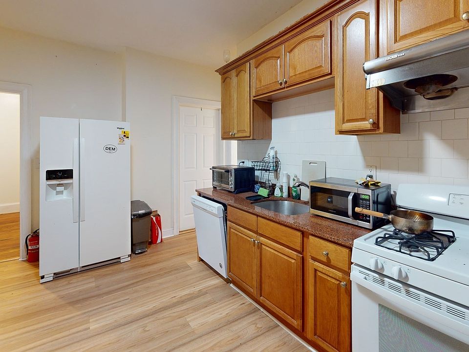 This private bedroom is part of a shared 4-bedroom, 1-bath apartment featuring beautifully refinished hardwood floors, a bright eat-in kitchen with gas stove and full-size fridge, and large common areas perfect for shared living. Recent updates include a brand-new gas steam boiler and a 40-gallon hot water tank for enhanced comfort and reliability. Don't miss this opportunity schedule a viewing today!