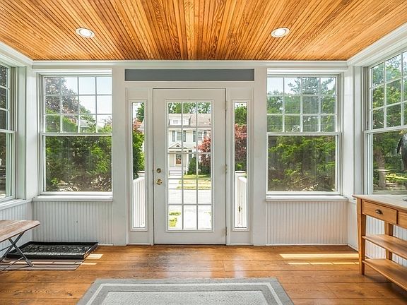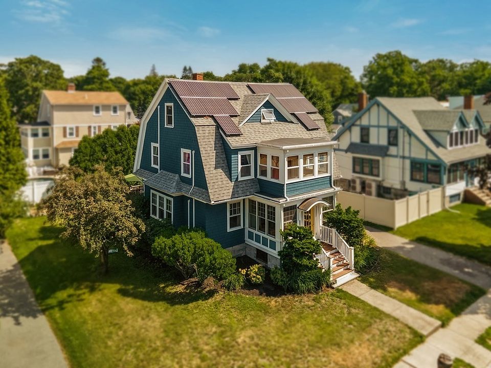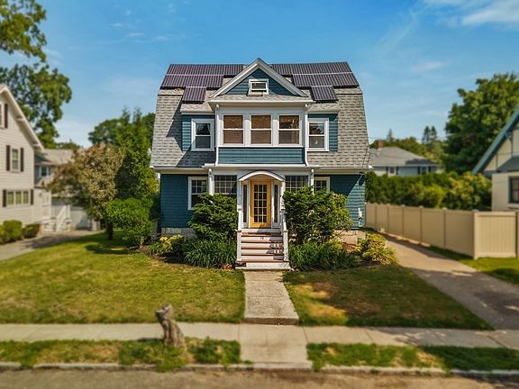 An IMPECCABLY maintained, energy efficient, turn-key Dutch gambrel colonial awaits its next owner on a quiet & desirable side street in idyllic West Medford. Enter the sunny, spacious mudroom w/ inlaid wood ceiling & into the generous foyer. To the left, a charming living room w/ coffered beam ceilings, a window seat & fireplace. To the right a former dining room turned library/sitting room. An efficiently built 1/2-bath sits beneath the center stairwell. In the back, the renovated kitchen, bkfst bar & dining room fill out the recent addition. A sizable deck perched over the backyard opens off to the side. The primary bedroom w/ en suite bath occupies the second floor, along w/ a guest bath & 2nd bedroom w/ an adjoining insulated sunroom. 2 more generously sized bedrooms are on the third floor. Mini-splits w/ solar panels & modern insulation keep this home optimally comfortable w/ low energy costs. Situated less than 1/2 mile from the Lower Mystic Lake & the W Medford Commuter Rail.