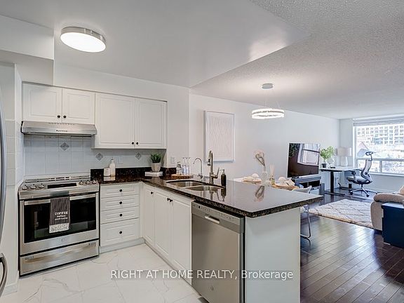 Beautiful 1 bedroom condo with 9 Ft. Ceilings and All UTILITIES Included incl cable and internet. Large open concept kitchen with newer stainless steel appliances, sun-filled living and dining room with new light fixtures. Spacious primary bedroom with direct access to balcony and deep sliding door double closet. Ensuite laundry and 4 piece bathroom. Modern and well maintained unit and building. Private & Secure w/Gatehouse & 24-7 Security guards! Walk to area Restaurants and Hillcrest Mall. Building amenities includes; tennis court, jungle gym play area, Sauna, gym, Pool & Renovated party room.