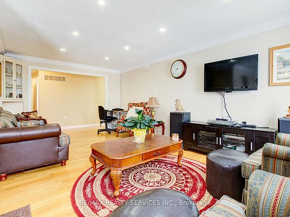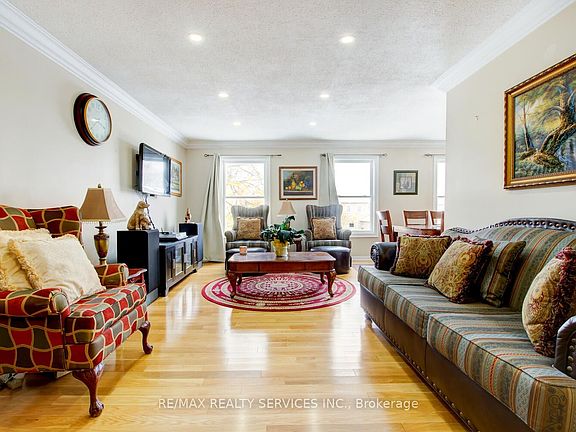 Gorgeous 3 + 1 bedroom, 3 bath detached raised bungalow with three separate entrances to the lower level ! Mainfloor features a updated eat-in kitchen with quartz countertops, stainless steel appliances and 12" x 24" tiles. Spacious master bedroom with 3 - pc ensuite bath, walk - in closet, gleaming hardwood floors, pot lights and crown mouldings. Nicely finished lower level featuring a 2nd kitchen with side door entrance, family room / 4th bedroom with walk-out ( separate entrance ) to a large covered deck, 3 - pc bath and garage entrance to house ( separate entrance ). High efficiency furnace ( 2020 ), central air ( 2025 ), central vac, upgraded garage doors ( 2025 ) with two openers, four car parking, walking distance to schools, parks, shopping and quick access to HWY # 410. Shows well and is priced to sell !
