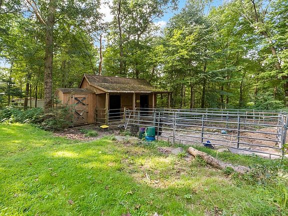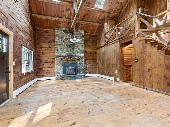 A wonderful log cabin with tons of potential. This property is great for someone who wants animals and or privacy. This home features a wonderful floor-to-ceiling wood-burning fireplace with a wood stove and cathedral ceilings in the living room. For someone who is looking for one-level living, there is a first-floor bedroom, as well as a full bathroom. There are also two bedrooms upstairs with generous closets. The barn is a two-stall barn, set up as a run-in, complete with fencing and a tack room attached to the barn. This home is ready for your furry friends with two sheds, one for feed and the other for additional supplies.