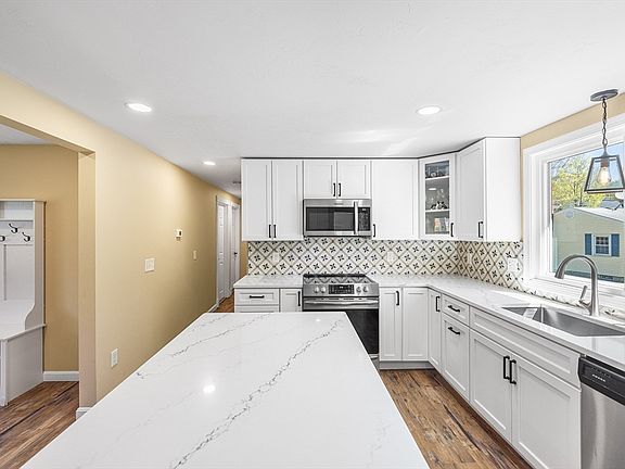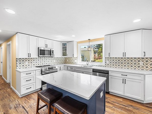 - Features: Flooring - Laminate, Window(s) - Bay/Bow/Box, Countertops - Stone/Granite/Solid, Countertops - Upgraded, Kitchen Island, Cabinets - Upgraded, Open Floorplan, Recessed Lighting, Stainless Steel Appliances, Lighting - Pendant