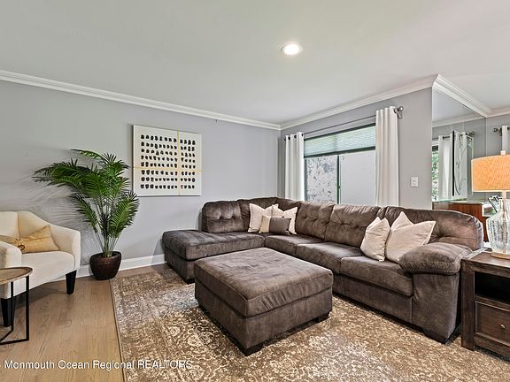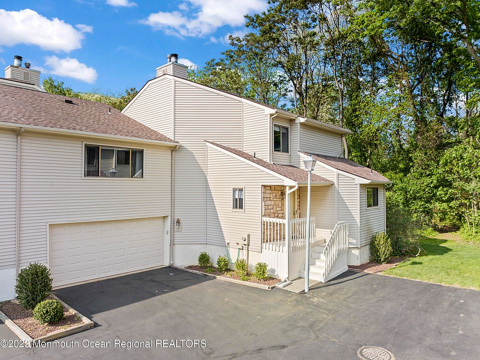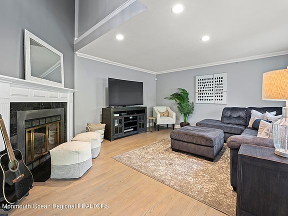 Live like a star!! Recently used for filming ''Severance,'' directed by Ben Stiller, this move-in ready 3 bedroom, 2.5 baths, plus finished basement is ready for its next owner. Enter the home and enjoy the beautiful hardwood flooring, kitchen, spacious living room with wood burning fireplace, large dining area & sliding doors that open to an oversized patio backing up to the woods. Finishing touches include solid wood interior doors, designer moldings, and blinds. Plus direct entry 2 car garage offers parking and storage. Kings Landing offers a community pool for hot summer days and is minutes away from the beach. Its prime location is convenient to Rt 35 for shopping, dining, and the vibrant town of Red Bank. Easy commute to NYC by train, bus or ferry. (2,067sq ft as per tax records).