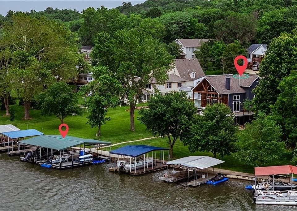 Quiet cove location and BELOW appraised value! The best price per sq foot in Lotawana and it even comes FURNISHED! Rare find on a LEVEL lot with 3 slips! The abundance of natural light and windows in this home allow you to enjoy the views from the main level and upstairs. House comes fully furnished and also includes an additional lot. Quiet cove perfect for swimming, canoeing, boating and all your fun lake activities! Beautiful A Frame architecture and a completely open concept floorplan. Double dock with dual jet ski and 3rd slip nearby included! House also comes with an extra lot across the street for parking or whatever you like. HEATED driveway fits 9 cars!!! Composite deck, whole house generator, epoxied garage floor and plenty of room to sleep up to 12 guests or more! 2 beds on main, Master upstairs with additional bedroom and 2 in lower level. Main kitchen with large center island and a second kitchen on the lower level even has its own entrance from the garage and is perfect for entertaining guests and family. So many updates for you to enjoy your full time or part time stay at the lake. Boats not included.