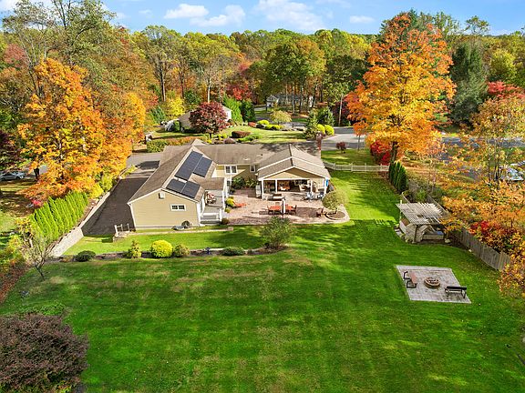 Gorgeous custom built California Ranch style home with in-law apartment. Perfectly perched on stunning 1.05 acre. Located on cul-de-sac in desirable Monroe neighborhood. Step inside spacious living room featuring bay window allowing in natural light and year-round views of the scenic neighborhood. Beautiful fireplace equipped with wood burning stove insert. The heart of the home is the spectacular kitchen/dining combo. A chef's delight boasting beautiful, abundant cabinetry, large center island with granite counters, top of the line appliances, glass tile backsplash and slider out to an incredible oasis. A gorgeous covered (wood ceiling) deck with Trex steps down to enormous stone patio overlooking lush landscaping, and fire pit. Personal Pizzeria! Pizza oven with counter bar built of stone/granite. Professionally landscaped property features mature trees and plantings. This outdoor living is superb in design and functionality. Luxurious primary bedroom suite features sitting area, spacious custom-built walk-in closet and beautifully updated full bath offering double shower and granite topped vanity. Just off the primary bedroom is a wonderful office/library area with slider out to beautiful grounds. 2 sun drenched bedrooms with custom built closets and den/guest room share spacious, beautifully updated hall bath with double shower. The amenities in the main house continue to the lower level providing fantastic recreation room, separate laundry room and extra utility room. In-Law Apt- Great for family, extended guests, home office or income generation! Amazing main level apartment offers sun-lit space including living room, beautifully appointed eat in kitchen and dining area. A separate large bedroom with custom dressing room/walk in closet and gorgeous newer full bath with marble topped vanity, double shower and laundry. Two sets of sliders lead out to a Trex deck overlooking property. The apartment is also equipped with a separate 2 car garage, storage, mud room and private entrance. MAJOR BONUS! Save thousands of dollars a year on utilities enjoying this completely paid for solar system resulting in minimal electric bill for most of the year! Extra benefits include gleaming hardwood floors throughout most of the home, high end ceramic tile in baths, new hot water heater, custom closets with built-ins. Windows galore invites the outdoors into every room. Tons of storage. Charming shed with porch and room for a pool! Quiet cul-de-sac street. Whether enjoying a pampered lifestyle every day, large outdoor gatherings or entertaining for holiday feasts, 19 Pamela Dr. has it all for year-round luxury. Close to top rated schools, shopping and Wolfe Park where residence enjoy pool, park and recreation!
