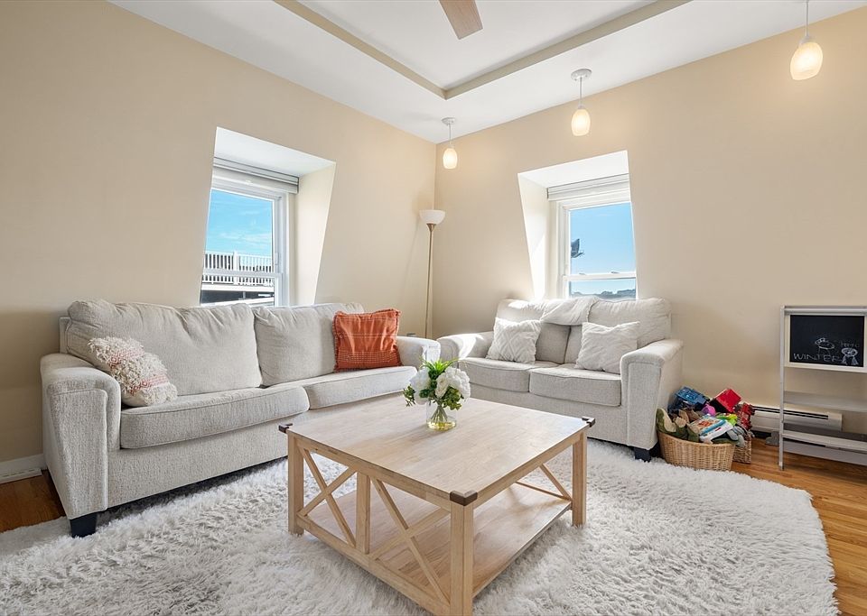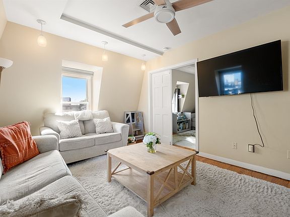 Sun-filled top-floor 3-bedroom unit in a charming Victorian brownstone! Features an updated bathroom, in-unit laundry, modern hardwood floors, stainless steel appliances, and granite countertops. The open layout flows to a private deck off the kitchen, perfect for relaxing or entertaining. Enjoy one driveway parking space, basement storage, and recent upgrades including new insulation, central A/C, and ceiling fans. Ideally located near Sullivan Square T-stop, bus lines, Route 93, and the shops and restaurants of Assembly Square. Exclusive roof deck rights add extra appeal.Unit and common areas have been deleaded A rare combination of classic charm, thoughtful updates, and unbeatable location.