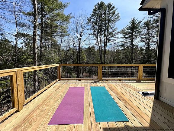 Come view this new construction modern contemporary Barnhouse Retreat located at the end of a quiet country road and perched on a hill surrounded by towering pines in the quaint hamlet of Sparrow Bush. This exquisite minimalist design offers tongue and groove white wood siding with a standing-seem metal roof offering a mid-century feel. Inside the open floor plan consists of 3 Bedrooms and 2 Full Baths perfect for the family or hosting guests at your weekend getaway. With 5" wide white oak hardwood floors throughout this new age design is sure to please. Offering vaulted ceilings into the free-span Living Room with two 16’ double sliding glass doors perfect for hosting dinner parties. Relax and enjoy the wonders of nature on your private acre lot with an oversized wrap around deck overlooking the Shingle Kill Creek with views of a private waterfall. The contemporary Kitchen boasts sleek custom cabinetry with quartz countertops. Unwind in your private Master Bedroom with a walk-in-closet and private spa with 60” custom rain head shower and custom tile work. An additional 2-car Garage equipped with EV charger, as well as, connections for a backup generator. Just minutes from Bethel Woods Center for the Arts and countless quaint Catskill villages with dining shops and cafes to fill your day. Come enjoy all the Catskills have to offer while being only 1.5 hours from NYC.