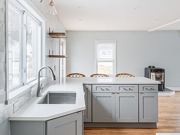 Tastefully renovated home in a neighborhood setting welcomes you thru the front porch. Inside you will fall in love w/ the kitchen w/upgraded cabinetry, quartz counters, SS appliances, & bkfst bar all accented w/ tile backsplash wall & floating shelves. Open to dining & living room w/ hdwd flrs Pellet stove & slider to outside space. 1st fl primary bdrm w/ All New spa style bath, w/tile shower, multiple shower heads inc rainfall feature, tile flooring & trendy navy vanity. Bonus rm inc propane FP, beadboard & barn door giving the space a homey feel w/multiple functions as a den, office, or playroom .2nd floor offers (2) spacious bdrms, w/ hdwd fls, built ins & great closet space. Plus Guest bath w/ tile tub/shower ,marble style flooring, linen closet & skylight . Outdoor living space inc fully fenced in yard , hot tub, ( 2) sheds & composite deck. In addition to all the cosmetic improvements & interior redesign all new plumbing, electric , mini splits w/ a/c. AND easy hgwy access