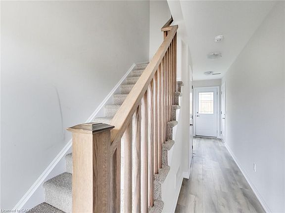 3-storey, 2 bedroom, 2 bathroom townhouse with a private balcony, with many upgraded finishing's. The kitchen offers stainless steel appliances, built in microwave, upgraded faucet, quartz counters, modern backsplash and extended height upper cabinets. Open concept main floor living offers space for a comfortable living room and dining room. Large windows offer plenty of natural light and a sliding door to your private balcony. Primary bedroom has a walk in closet, and the ensuite offers glass shower door, upgraded faucet, and quartz counters. Quartz countertops in the main bathroom as well. Full size washer/dryer on bedroom level. Access to garage as well as backyard on main level. Located close to schools, parks, walking trails, and easy access to the Red Hill / Linc.