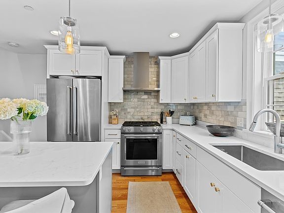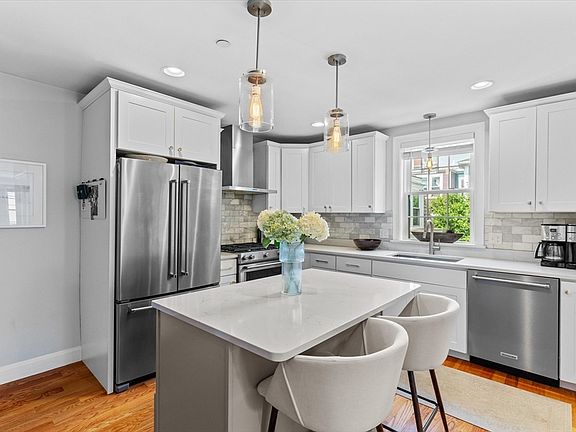 - Features: Flooring - Hardwood, Countertops - Stone/Granite/Solid, Kitchen Island, Cabinets - Upgraded, Recessed Lighting, Stainless Steel Appliances, Gas Stove, Lighting - Pendant