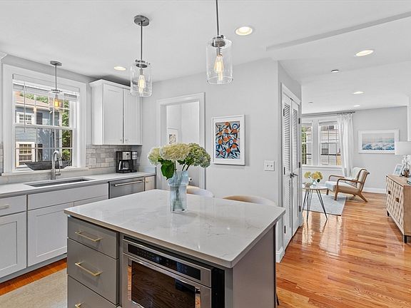Welcome to your dream home in the heart of Salem! This newly renovated 2-bedroom, 1.5-bath condo seamlessly combines modern luxury with historic charm. Just steps from Collins Cove beach, enjoy the peaceful waterfront or stroll to Salem Commons, the local shops, museums, and excellent restaurants all within walking distance. Inside, the open-concept living area features a cozy gas fireplace and a dining alcove, illuminated by three large windows filling the space with natural light. The state-of-the-art kitchen boasts sleek quartz countertops, KitchenAid stainless steel appliances, and custom cabinetry. Upstairs, you'll find two spacious bedrooms with cathedral ceilings, a spa-inspired bath, and an in-unit washer/dryer combo. Additional highlights include a high-efficiency heating and cooling system, a Rinnai tankless water heater, basement storage, deeded parking, and a shared patio. Salem is just 22 miles from Boston, offering an easy commute by car or train.