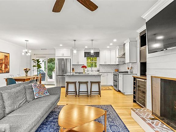 **CALL LISTING AGENT SARAH PRITCHARD AT 203.414.5571 FOR MORE INFO** Sitting pretty on a quiet street in Fairfield's desirable Stratfield neighborhood sits 19 Putting Green Rd, an adorable ranch that is impressive from top to bottom. Don't be fooled by the modest size this home packs a punch w/ desirable features & an open, sun-drenched floor plan. The white shiplap fireplace surrounded by built-ins, crown molding, a wine bar & hardwood floors in the living room will surely catch your eye, with the classic feel continuing throughout the home. The kitchen features an island w/ seating & storage, farmhouse sink, subway tile backsplash, pot filler, walk-in pantry, dining area & sliders to the deck. The multi-functional mudroom is perfect as an office, gym or family room. The spacious master bedroom features a French door to the deck & the master bathroom has 2 closets, a shower stall, private commode & soaking tub. The additional bedroom & chic full bathroom complete the main level. The lower level holds an office area, laundry room & large family room with a built-in projector... imagine hosting movie nights & watching the latest TV shows here! Relax on the deck with a coffee or cocktail, under the shade of many trees with a gorgeous view to admire - over half an acre! Enjoy watching deer roam around & the leaves change colors, all within the privacy of your backyard. This quiet piece of paradise is close to all of Fairfield's amenities, including the Merritt Parkway, I-95, train stations, schools, lakes, parks & more. A home that could be straight from the pages of Dwell, all you need to do is pack your bags & move right in.