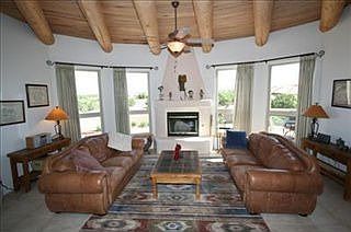 Lovely 3 bedroom home plus den/office in Eldorado with glorious VIEWS! Recent upgrades include a new furnace, new water softener, new mohawk wood flooring in master bedroom, new carpet in guest bedrooms, new stainless appliances including double ovens, refrigerator, & dishwasher. Enjoy cooking on the 5 burner Wolf range. Beautiful granite counter tops as well as a farm sink and breakfast bar. Extensive landscaping in the front courtyard as well as new rock work. New custom screen doors, nichos, 3 fireplaces - one outside under a covered portal. Curb appeal at its best!