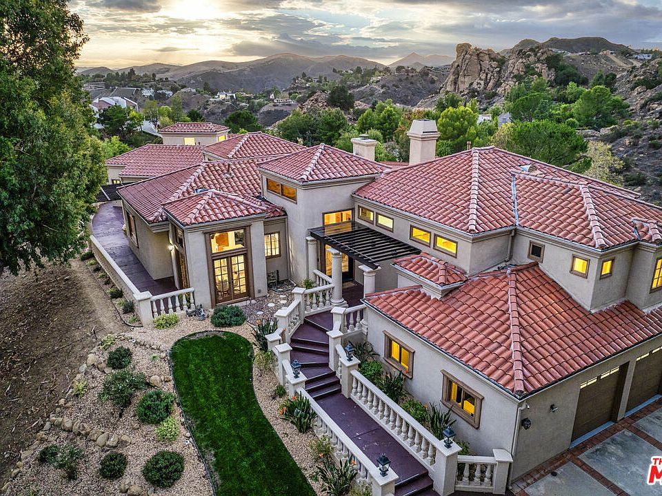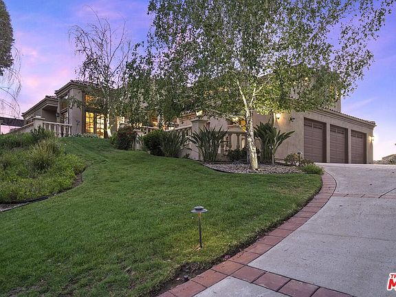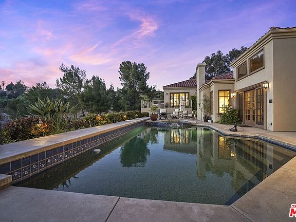 Located in the prestigious guard-gated community of Bell Canyon sits this one-of-a-kind spectacular view estate! Follow the long private driveway up to experience the home's true sense of privacy and tranquility. This remarkable residence sets itself apart with its open floor plan, soaring ceilings, and light-filled interior. Through the double-door entryway, you're welcomed into an expansive living room featuring a fireplace, wet bar, and custom wood-beamed ceilings. The adjacent family room showcases floor-to-ceiling walls of glass overlooking the lush park-like grounds, mountain views, and the sparkling pool and spa. The theme is simple yet sophisticated, with abundant natural light complemented by the warmth of wood and recently added engineered flooring throughout the main living areas and bedrooms. Enjoy the chef's kitchen with granite countertops, a center island, built-in refrigerator, pantry closet, and a separate breakfast nook. The formal dining room is perfect for entertaining large gatherings or hosting intimate dinners. One wing offers a generous primary retreat with a fireplace, an incredible spa-like bathroom, and an extra-large walk-in closet. Just off the primary suite is a great office area with custom built-ins. The second wing features three spacious bedrooms and two beautifully appointed baths.The outdoor space is a true entertainer's delight, with manicured grounds, multiple patios, and verandas all designed to take in the breathtaking views. Bell Canyon offers a lifestyle like no other, including a community park, fitness center, tennis courts, equestrian center, hiking and riding trails, and the highly sought-after Las Virgenes schools. This one-of-a-kind estate has it all. Schedule your private showing today!