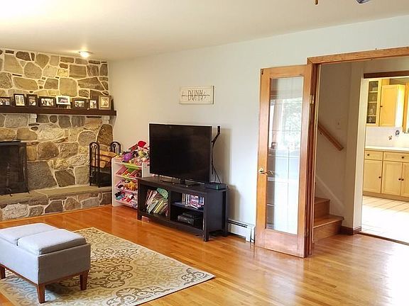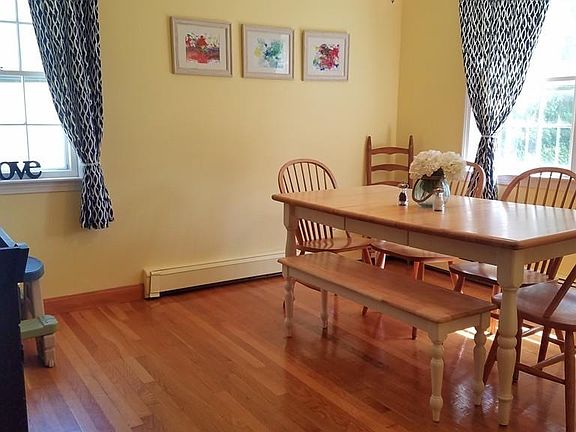 Three bedroom Cape on over a half acre lot in a great neighborhood. Large kitchen with generous amount of cabinets. Living room has a gorgeous stone fireplace, ceiling fan and bay window letting all the natural light in. Formal dining room. First floor bedroom is currently being used as a "man cave" with built-ins for storage space in closet. Large master bedroom with triple custom closet. Third bedroom has built-ins for extra storage. Gleaming hardwood floors. Three zone heating. Indirect hot water installed in 2015. Detached oversized two car garage,new garage doors 2017. Fenced in back yard. Nothing to do but move in!