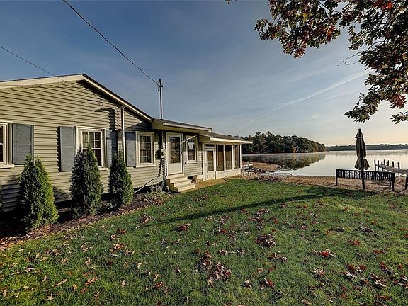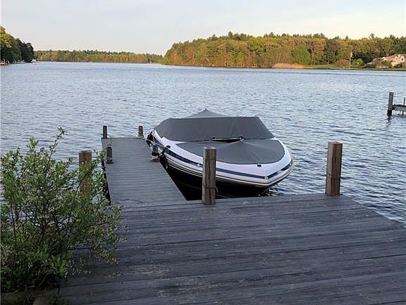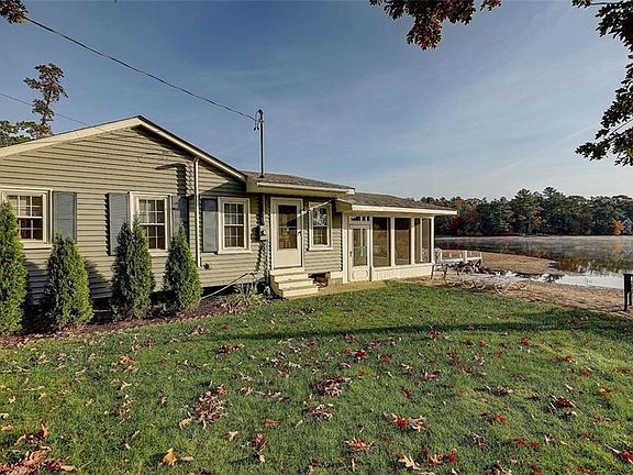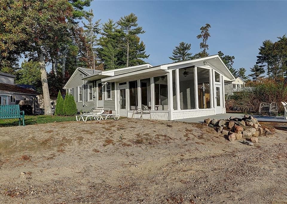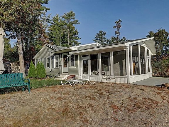 Year round waterfront 2 bed home with 55 ft of beach water frontage and with dock. Updated kitchen and bath. This home has stunning views of Johnson's Pond. There is a 16x20 3 season room with panoramic views. Newer roof, vinyl siding, windows and electric service. Pellet stove in living room for added heat Short walk to bike path. This is not on leased land.