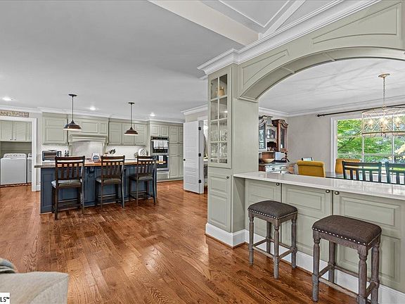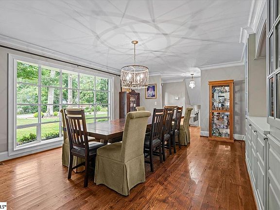 The Crown Jewel of Foxcroft! This stunning 5-bedroom home rests on one of the most picturesque lots on the Eastside, offering serene views of the private lake nestled within the community. A true entertainer’s dream, the thoughtfully opened floorplan welcomes you with an oversized dining area framed by a large picture window, flowing seamlessly into the updated kitchen. Here, you'll find a spacious butcher block center island, double ovens, gas cooktop, farmhouse sink, and sleek appliances—all designed for both style and function. Just around the corner, the vaulted family room with gas log fireplace provides a cozy yet elegant space to relax, all while enjoying tranquil lake views. Upstairs, the expansive primary suite features multiple his-and-her closets, a sitting room, and a luxurious ensuite bath complete with a walk-in shower and separate soaking tub. Two additional bedrooms share a full bath on the upper level, while the lower level offers two more bedrooms, a recently updated bathroom, and access to a kitchenette and versatile rec/theater room—perfect for movie nights, a home office setup, or casual entertaining. The rec room also opens to the lower patio for easy indoor-outdoor living. Outside, the landscaping has been extensively enhanced with new bushes, irrigation, landscape lighting, and even a putting green with chipping area. But perhaps the most cherished spot is the back deck—ideal for morning coffee while watching the ducks glide across the lake, or hosting a Masters watch party. Located just minutes from Patewood hospitals, I-85/385, and the vibrant shopping and dining along Pelham Road, this home offers unmatched convenience. Foxcroft remains one of Greenville’s most sought-after neighborhoods, known for its award-winning schools and exceptional community amenities, including a full athletic field, swimming pool with active swim team, basketball court, and tennis and pickleball courts. This location truly checks every box—and then some.