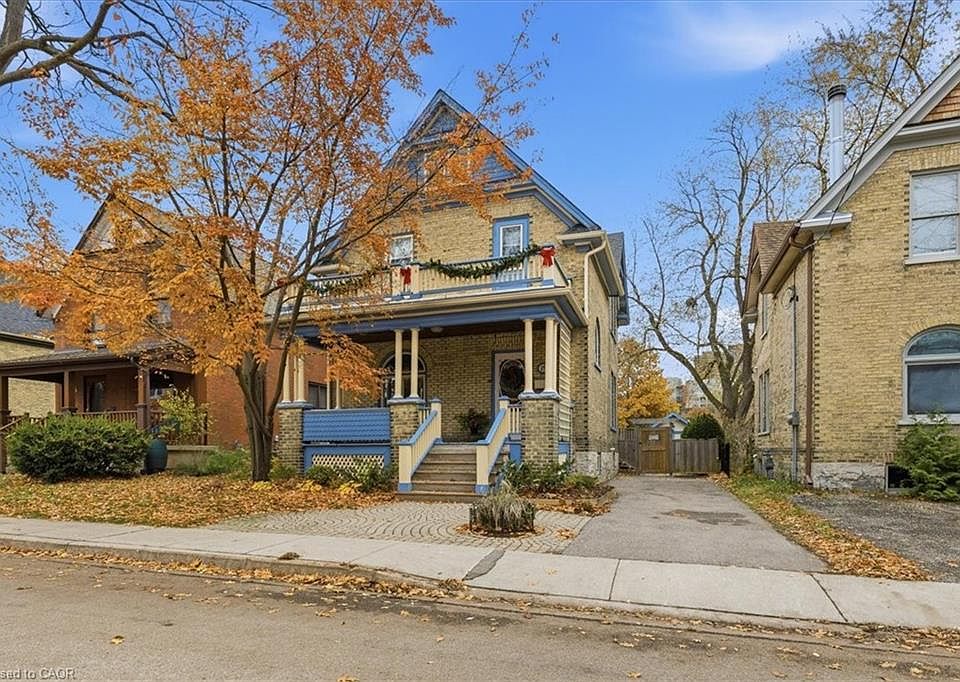 Set in the heart of Kitchener's crown jewel—Victoria Park—this pristine Berlin-vernacular residence at 19 Richmond Avenue offers a rare blend of historic charm and modern elegance. Tucked along an Avenue lined with brick heritage homes that border the lush greenery of the park, this property promises tranquility amid urban convenience. The exterior showcases timeless appeal, with its signature two-story porch spanning the full width of the home—a hallmark of Berlin-vernacular architecture. Arched windows framed by soldier course brickwork and original stained glass accents add character, while symmetrically placed gabled roof peaks create a balanced, picturesque silhouette that stands out. Step inside to discover an interior where heritage meets contemporary comfort. Soaring Victorian ceilings and tall, well-maintained original windows (complete with storms) flood the space with natural light, complemented by rich hardwood trims and restored pine floors. The gracious main-floor layout offers a sleek, modern eat-in kitchen with black stainless steel appliances; an ample dining room inviting memorable dinner parties; a cozy family room with a wood-burning fireplace for rustic warmth; and a formal living room provides an elegant retreat. Seamless indoor-outdoor living whether through the covered front porch or the expansive, restored rear deck, both offering serene views of Victoria Park. Upstairs, three comfortable bedrooms await, alongside a luxurious three-piece bathroom. A bonus walk-up attic serves as versatile recreational space. The basement expands your living options with a sizeable rec room, an updated electrical panel (fully rewired with ESA certification, neatly framed), and a mechanical room providing storage and laundry. 19 Richmond Avenue is more than a home—it's a unique piece of Kitchener's history, that places parkside serenity at your doorstep with access to the LRT and future transit hub.
